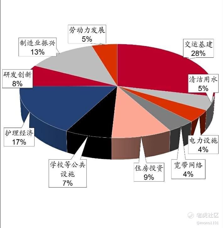 拜登這一投資計劃蓋范圍較廣,不僅僅局限在傳統基建,還涵蓋了各種綠色基建,例如清潔能源投資等,另外計劃中制造業振興、研發創新的支出佔比也相對較高。