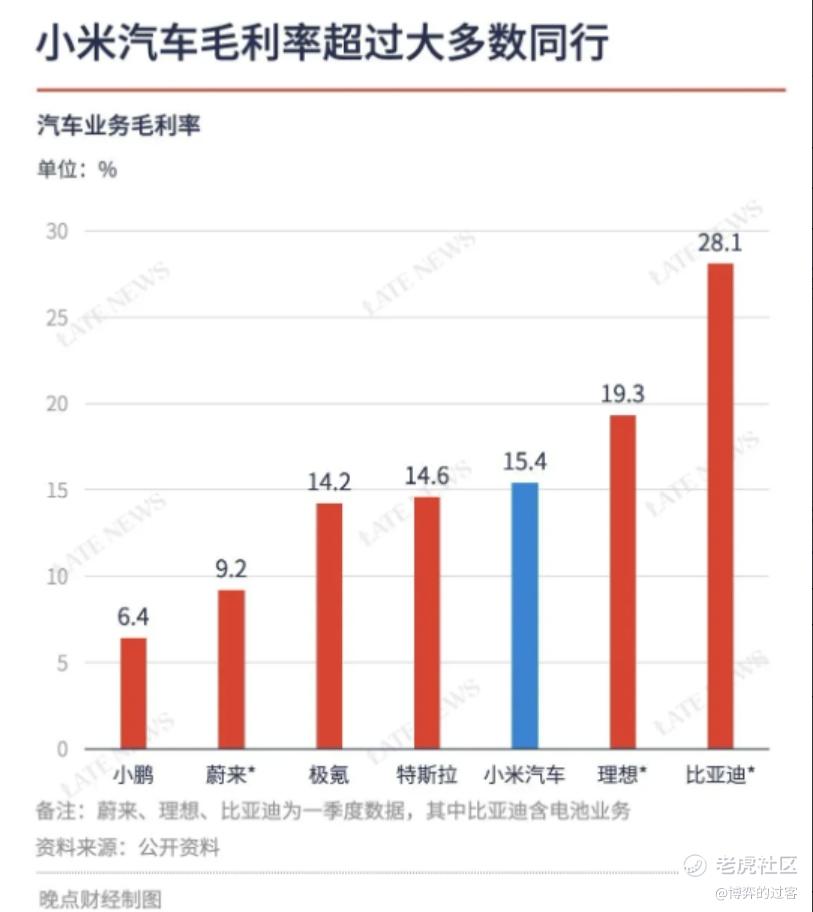 其实横向对比来看,小米第一辆车的毛利率也算是做到了行业还不错的水平