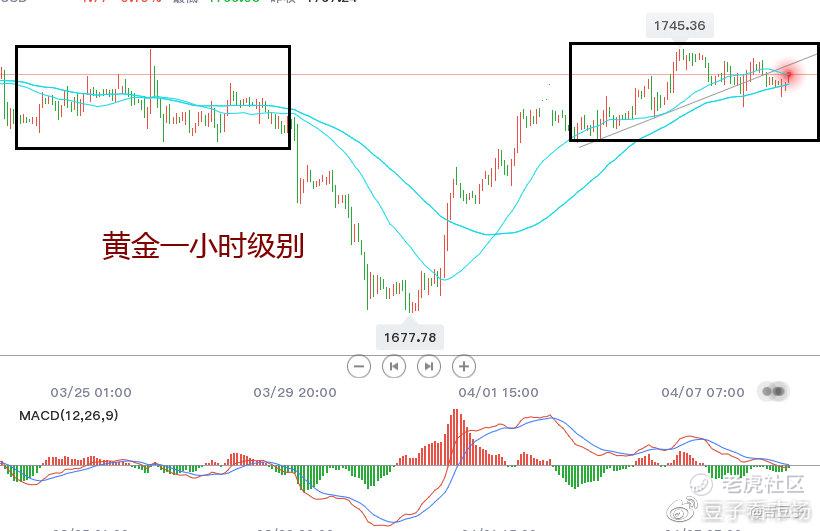 图为黄金一小时级别,在经历1677筑底,反弹其实是非常顺利的,一些关键位置的破位都非常干脆,但是在这几天受到了阻力,做交易的都能看出来现在这个区间,又回到了砸盘前的状态。之前是盘了半个月才等来一个大行情,没多久又要盘上了?现在小时k线其实在逐渐走低,在上次到45后虽然下来了,但是还是做了短多期待破位的,可在这之后高点在沿着MA30均线逐渐下移,现在是受到MA60均线的支撑,早上直播的时候等了一小时的收线,结果仍然没实体破位,只是下影线刺破。那说明均线的支撑也很到位。