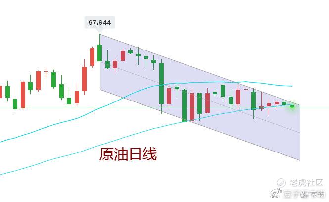 图为原油日线图,看过上午直播的朋友应该知道,我挺无奈的,虽然走出来了,但是并没有明显破位,能怎么办呢,只能把区间再次拉长,得到下图这个区间。虽然没破位,但是有一个信号不能忽略:目前k线实体跌破均线系统支撑。