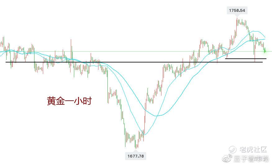 图为黄金一小时级别。今天开盘在1743位置,但是一路下跌,最低是到了36,小级别的macd都是空头在放量下跌动能比较强,但我不打算做空,今天交易以低点做多为主。图中黑色长线位1731,上周已经下探了两次,但都没破,建议34附近进多(黑色短线位置),日内短线目标42,止损31。