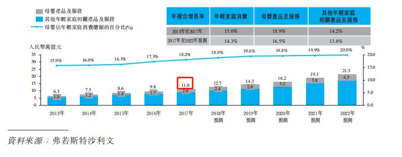 与此同时,育儿已经渐成为家庭全员参与的“家庭性事件”,母婴市场的边界不断模糊、扩大,目标用户将覆盖父母及祖父母等近6亿人口,母婴经济也逐渐向家庭经济转变。数据显示,2017年年轻家庭市场消费规模已达11万亿元,前景十分巨大。