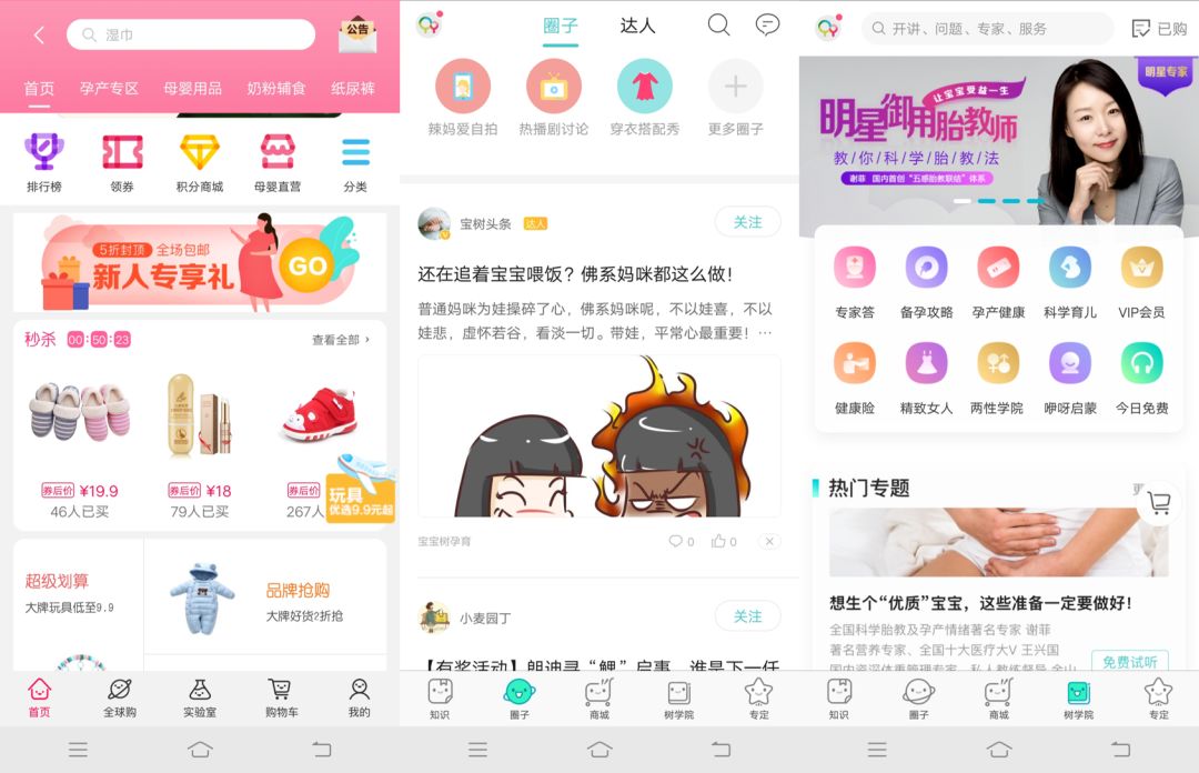 而在巨大用户量的支持下,基于平台上形成的互动社交圈子也已超过33万个,发帖量达8500万,用户评论超12亿,UGC资源极其丰富;与此同时,专家团队产生的PGC、达人产生的PUGC也完全覆盖了孕前、孕期、分娩、早教等各个阶段,能够有效满足母婴用户的多元化需求。