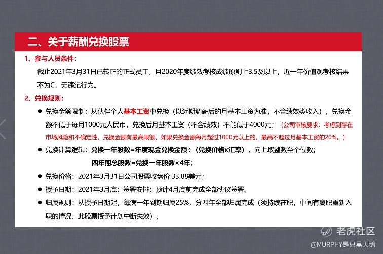 $跟谁学(GSX)$炒股聊天群看了一个巨雷的消息,,虽然不知道真假,但这操作真没谁了。跟谁学要求员工薪酬按3月31日33.88美元兑换公司股票,还要求绩效不能低于c,不能离职,没有违纪行为。难道这就是跟谁学盘前涨的原因????[无语]