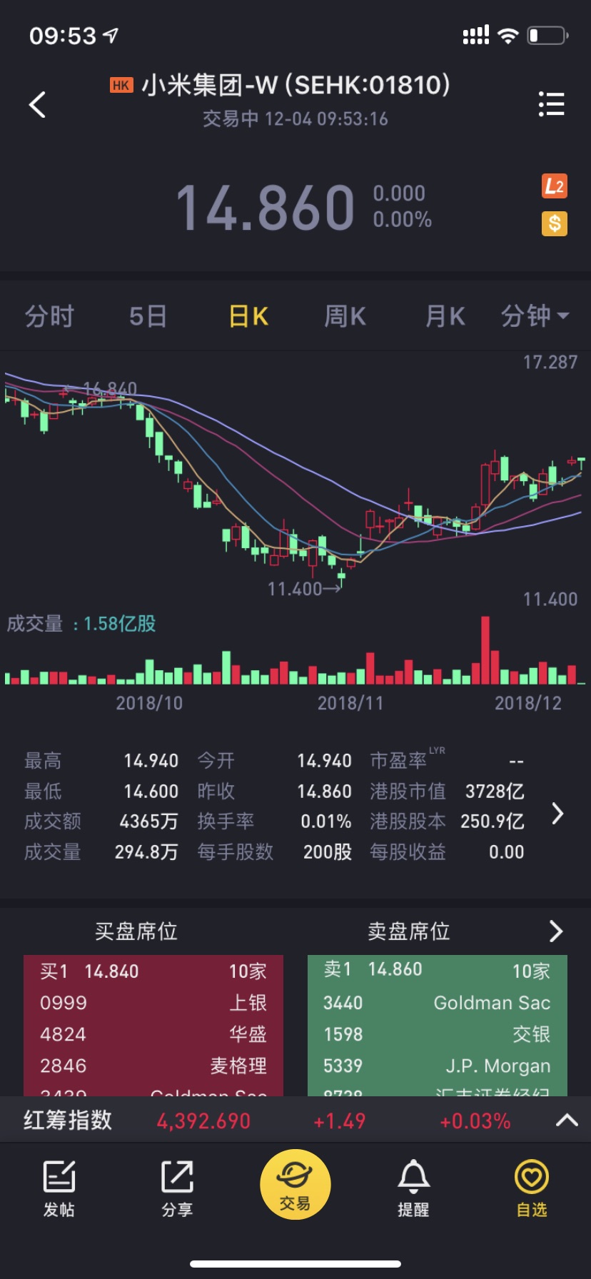 $小米集团-W(01810)$ 0.01% 为什么换手率这么低?这么不活跃?