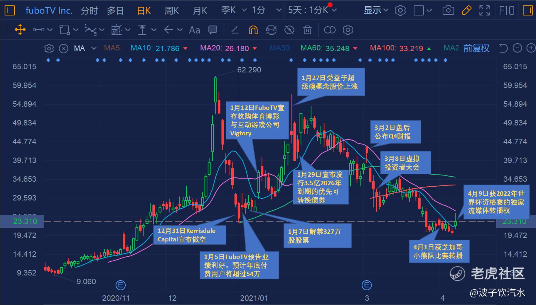 12月30,对冲基金公司Kerrisdale Capital宣布做空FuboTV,表示该公司的商业模式结构性无利可图,并称锁定期到期之际,抛售行为将致使股价压低至10美元以下。