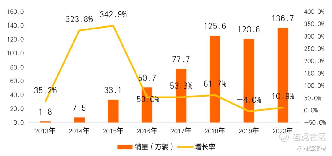 通过多年来对新能源汽车整个产业链的培育,各个环节逐步成熟,丰富和多元化的新能源汽车产品不断满足市场需求,使用环境也在逐步优化和改进,在这些措施之下,新能源汽车越来越受到消费者的认可。2020年,新能源汽车产销分别完成136.6万辆和136.7万辆,同比增长分别为7.5%和10.9%,增速较上年实现了由负转正。从月度产销情况来看,新能源汽车从7月份开始呈现增长态势,增幅逐渐扩大,且每个月产销均刷新了当月历史记录,12月更是创下历史新高。12月,新能源汽车产销分别完成23.5万辆和24.8万辆,同比增长分别为55.7%和49.5%。