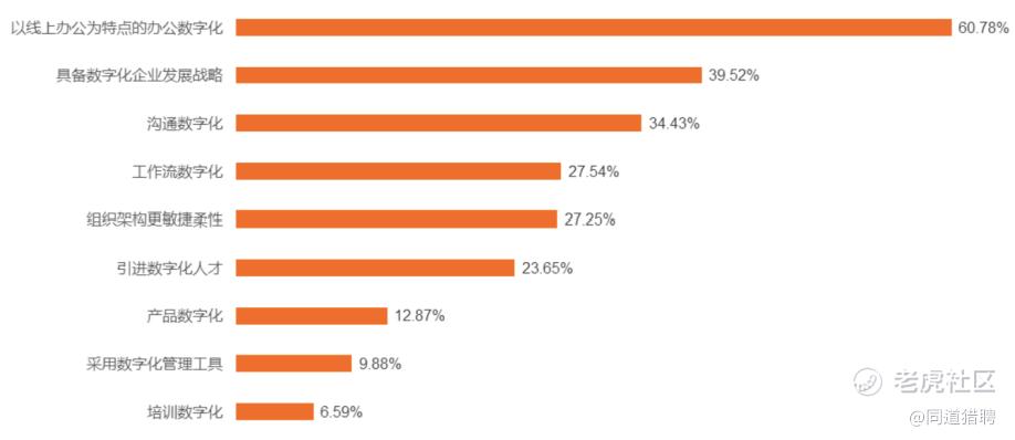 - 企业落实情况最好的是办公数字化,得票率为60.78%;