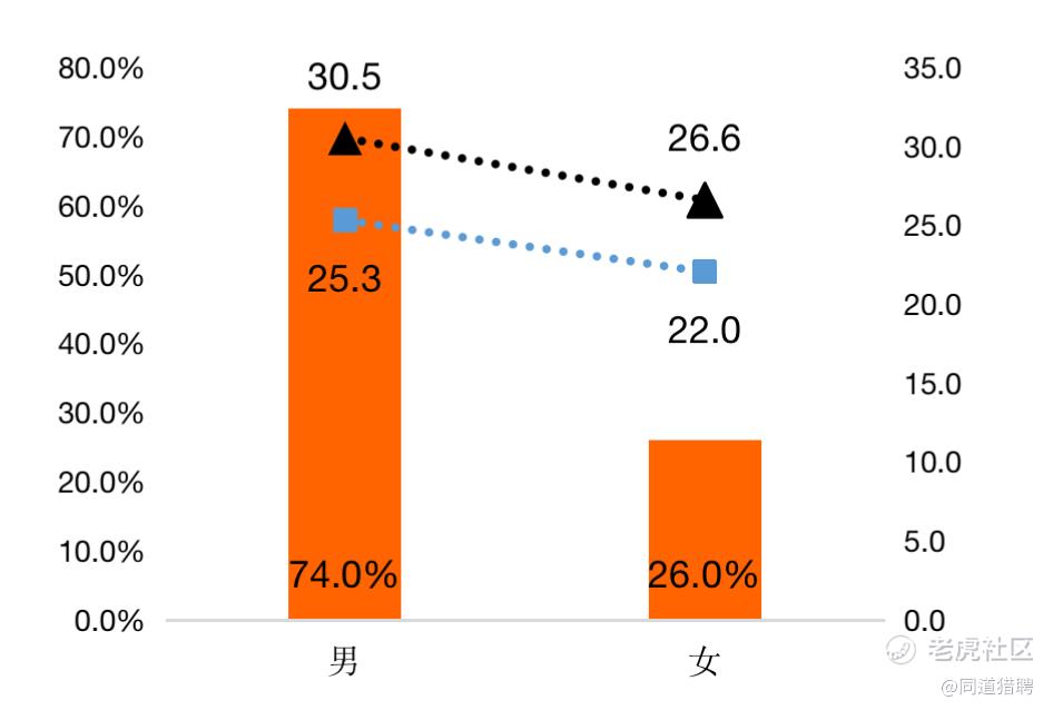 81%为男性,男性当前及期望薪资均高于女性,占行业主导地位;74%为25-35岁青年人,且这个年龄段的期望薪资涨幅达26%以上,在所有年龄段中期望薪资涨幅最高,年龄阅历的积累来带一定的薪资价值。