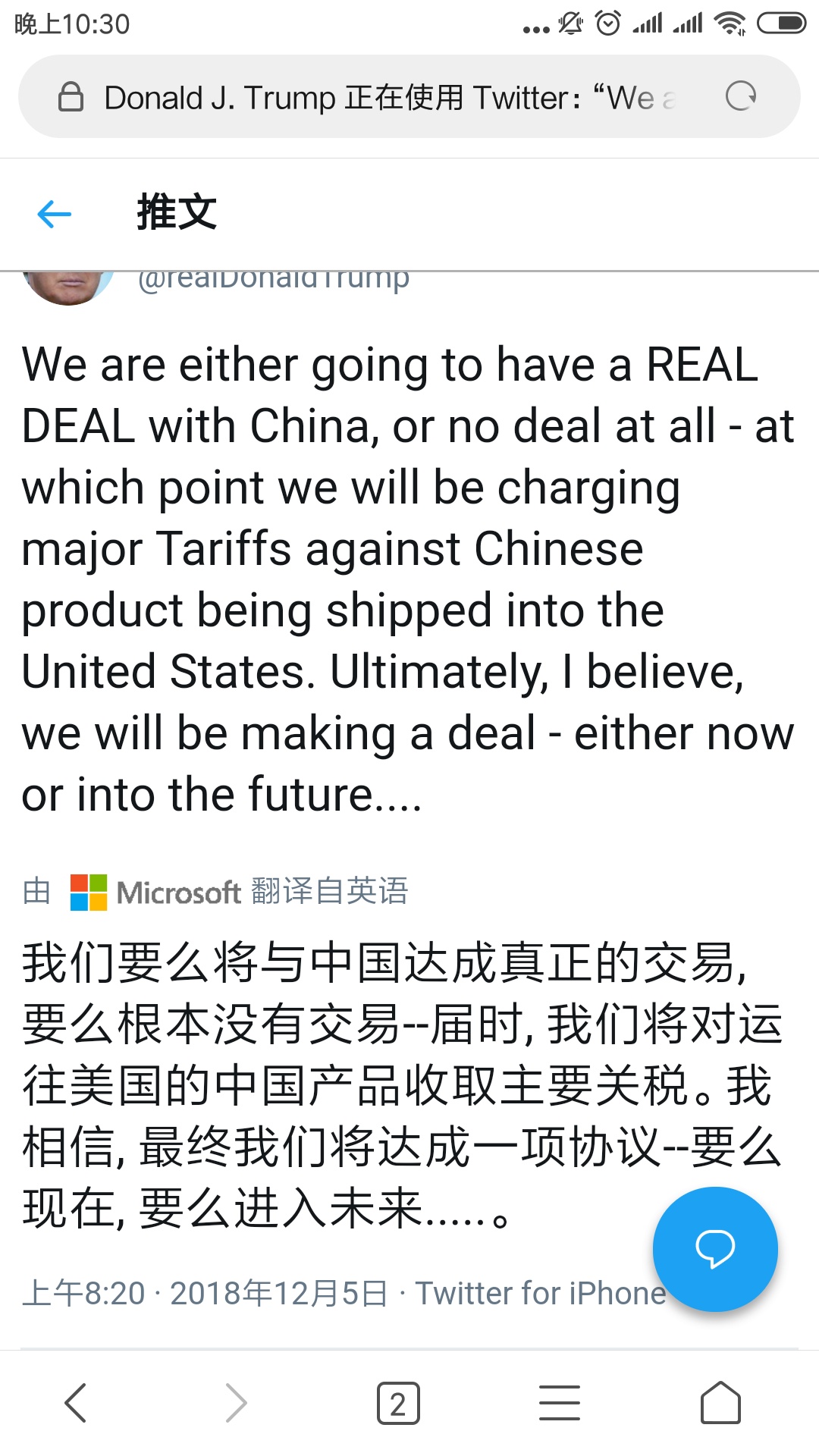 $阿里巴巴(BABA)$ $京东(JD)$ $哔哩哔哩(BILI)$ $亚马逊(AMZN)$ 看起来特朗普对贸易战和解比我们更上心呀。最近的推文都是有关cn的。