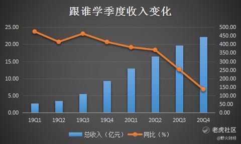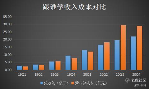为了达到上述高速成长,花钱是必须的。2019年以来,公司连续8个季度保持收入三位数增长,代价非常巨大。以去年四季度为例,跟随学总收入22.11亿元,同比2019年四季度9.35亿元增长136%。销售费用约18亿元,研发费用2.75亿元,管理费用大约2.18亿元,三项费用累计22.9亿元;同比上一个年度的5.71亿元增长301%。