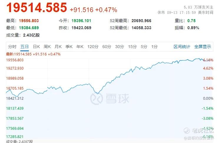 (1) 本周美股盘中震荡,收盘连涨5天,受科技股乐观情况(甲骨文,英伟达老黄发言),以及对美联储降息的憧憬中。下周美联储议息,目前降25还是50基点各50%,美联储要扔硬币吗?