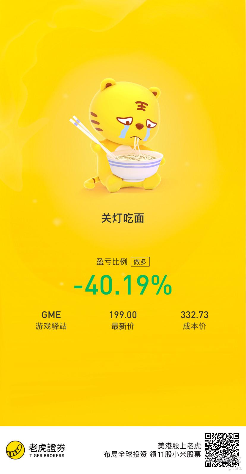各种亏,GME最低的50多到200已经算满意了,不涨到500就一直持有,只要没卖出就不是小韭菜。感觉宁德时代又会被我长期持有了,不变红就不卖!