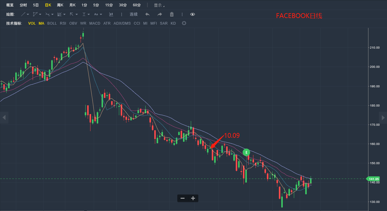 再看下面这张FACEBOOK $(FB)$ 的日线走势图: