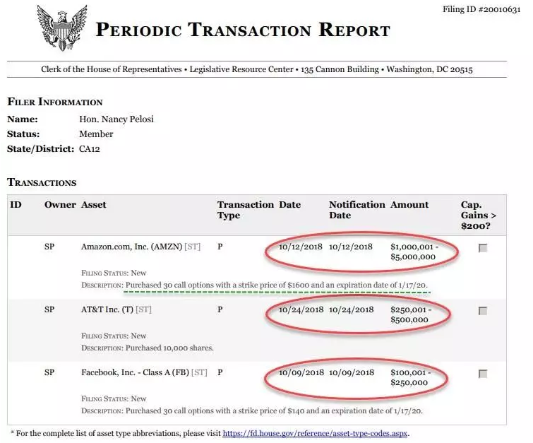 关心国际政治的同志或许认得,这个女人就是美国民 主党众议院领袖,未来的美国众议院议长南希·佩洛西,而以上资料并非来自坊间传闻,是来自于美国众议院的官方披露文件: