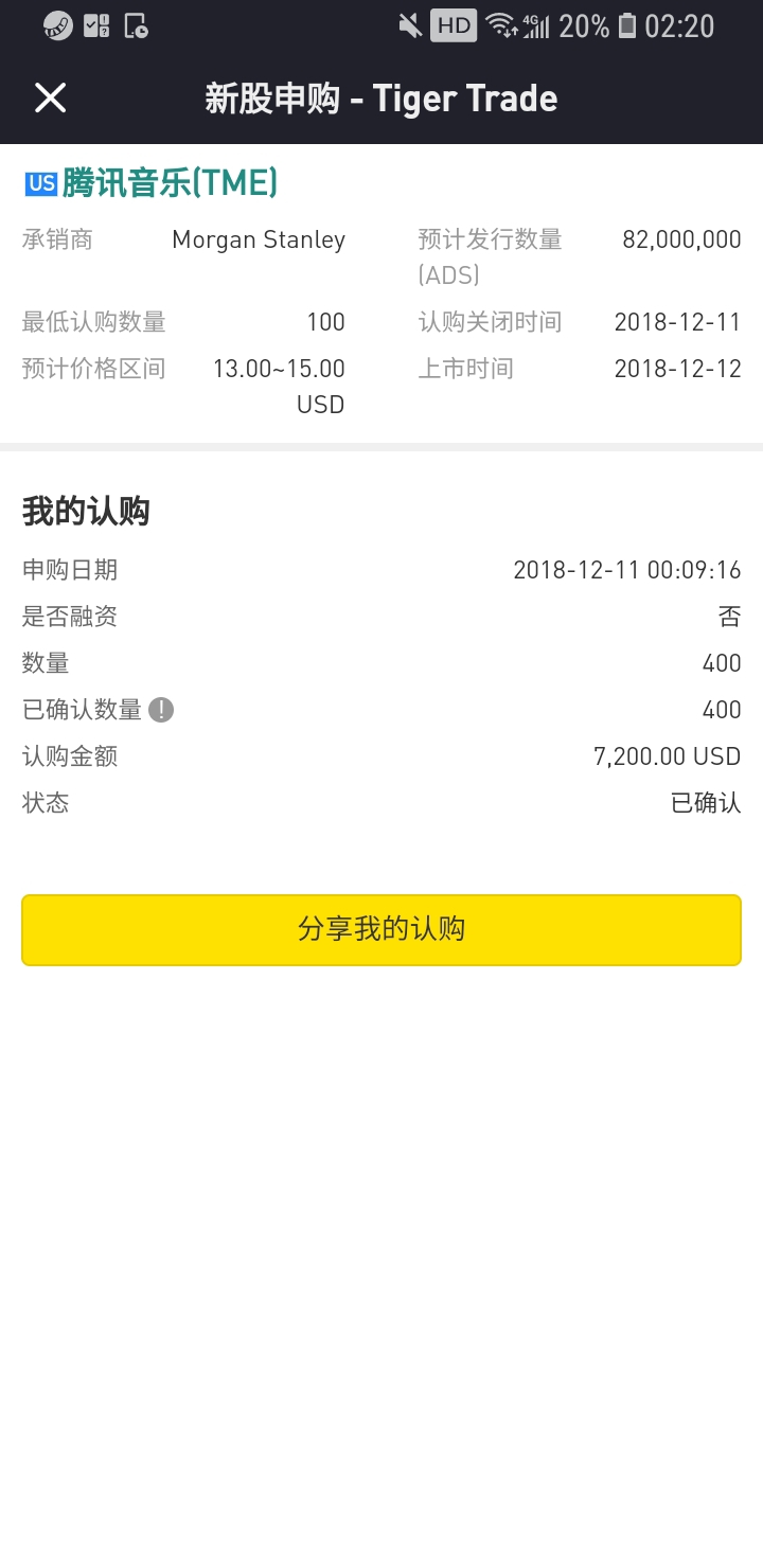 {"i18n":{"language":"zh_CN"},"detailType":1,"isChannel":false,"data":{"magic":2,"id":352930,"tweetId":"352930","gmtCreate":1544624103873,"gmtModify":1704783620051,"author":{"id":3505864202759326,"idStr":"3505864202759326","authorId":3505864202759326,"authorIdStr":"3505864202759326","name":"同学你好","avatar":"https://static.tigerbbs.com/fd9bcfeb3aba493a1b94dca9d87cc1dc","vip":1,"userType":1,"introduction":"","boolIsFan":false,"boolIsHead":false,"crmLevel":2,"crmLevelSwitch":0,"individualDisplayBadges":[],"fanSize":4,"starInvestorFlag":false},"themes":[],"images":[{"img":"https://static.tigerbbs.com/eaa8b7bddbd8259f64654ac6d96b31e9"}],"coverImages":[{"img":"https://static.tigerbbs.com/eaa8b7bddbd8259f64654ac6d96b31e9"}],"extraTitle":"","html":"<html><head></head><body><p>$腾讯音乐(TME)$有些紧张😰</p> <p><img src=\"https://static.tigerbbs.com/eaa8b7bddbd8259f64654ac6d96b31e9\"></p></body></html>","htmlText":"<html><head></head><body><p>$腾讯音乐(TME)$有些紧张😰</p> <p><img src=\"https://static.tigerbbs.com/eaa8b7bddbd8259f64654ac6d96b31e9\"></p></body></html>","text":"$腾讯音乐(TME)$有些紧张😰","highlighted":1,"essential":1,"paper":1,"likeSize":1,"commentSize":7,"repostSize":0,"favoriteSize":0,"link":"https://laohu8.com/post/352930","repostId":0,"isVote":1,"tweetType":1,"viewCount":1962,"commentLimit":10,"likeStatus":false,"favoriteStatus":false,"reportStatus":false,"symbols":["TME"],"verified":2,"subType":0,"readableState":1,"langContent":"CN","currentLanguage":"CN","warmUpFlag":false,"orderFlag":false,"shareable":true,"causeOfNotShareable":"","featuresForAnalytics":[],"commentAndTweetFlag":false,"andRepostAutoSelectedFlag":false,"upFlag":false,"length":25,"xxTargetLangEnum":"ZH_CN"},"commentList":[{"id":1208570,"commentId":"1208570","gmtCreate":1544624295240,"gmtModify":1544624295240,"authorId":3497187330900729,"author":{"id":3497187330900729,"idStr":"3497187330900729","authorId":3497187330900729,"name":"感悟人生518","avatar":"https://static.tigerbbs.com/b26c1e0553870958de53c0749266fb1a","vip":1,"currentWearingBadge":{"badgeId":"e50ce593bb40487ebfb542ca54f6a561-2","templateUuid":"e50ce593bb40487ebfb542ca54f6a561","name":"资深虎友","description":"加入老虎社区1000天","bigImgUrl":"https://static.tigerbbs.com/0063fb68ea29c9ae6858c58630e182d5","smallImgUrl":"https://static.tigerbbs.com/96c699a93be4214d4b49aea6a5a5d1a4","grayImgUrl":"https://static.tigerbbs.com/35b0e542a9ff77046ed69ef602bc105d","redirectLinkEnabled":0,"hasAllocated":1,"isWearing":1,"stampPosition":0,"hasStamp":0,"allocationCount":1,"allocatedDate":"2021.12.19","individualDisplayEnabled":0,"individualDisplaySort":0,"categoryType":1001},"crmLevel":1,"crmLevelSwitch":0,"individualDisplayBadges":[]},"repliedAuthorId":0,"objectId":352930,"objectIdStr":"352930","type":1,"supId":0,"supIdStr":"0","prevId":0,"prevIdStr":"0","content":"我认购的比你多,你怕啥","text":"我认购的比你多,你怕啥","html":"我认购的比你多,你怕啥","likeSize":0,"commentSize":3,"subComments":[{"id":1208644,"commentId":"1208644","gmtCreate":1544624919088,"gmtModify":1544624919088,"authorId":3505864202759326,"author":{"id":3505864202759326,"idStr":"3505864202759326","authorId":3505864202759326,"name":"同学你好","avatar":"https://static.tigerbbs.com/fd9bcfeb3aba493a1b94dca9d87cc1dc","vip":1,"crmLevel":2,"crmLevelSwitch":0,"individualDisplayBadges":[]},"repliedAuthorId":0,"objectId":352930,"objectIdStr":"352930","type":1,"supId":1208570,"supIdStr":"1208570","prevId":0,"prevIdStr":"0","content":"哈哈哈,祝大涨!","text":"哈哈哈,祝大涨!","html":"哈哈哈,祝大涨!","disclaimerType":0},{"id":1208631,"commentId":"1208631","gmtCreate":1544624819810,"gmtModify":1544624819810,"authorId":3478911899290568,"author":{"id":3478911899290568,"idStr":"3478911899290568","authorId":3478911899290568,"name":"心系aip情缘","avatar":"https://static.tigerbbs.com/bf919d88567cad23ad575daedf2a5453","vip":1,"crmLevel":5,"crmLevelSwitch":0,"individualDisplayBadges":[]},"repliedAuthorId":3500494053551917,"repliedAuthor":{"id":3500494053551917,"idStr":"3500494053551917","authorId":3500494053551917,"name":"打劫华尔街","avatar":"https://static.tigerbbs.com/3fe77a5a1579b9370ab331985744afe8","vip":1,"crmLevel":9,"crmLevelSwitch":0,"individualDisplayBadges":[]},"objectId":352930,"objectIdStr":"352930","type":1,"supId":1208570,"supIdStr":"1208570","prevId":1208581,"prevIdStr":"1208581","content":"不是","text":"不是","html":"不是","disclaimerType":0},{"id":1208581,"commentId":"1208581","gmtCreate":1544624412679,"gmtModify":1544624412679,"authorId":3500494053551917,"author":{"id":3500494053551917,"idStr":"3500494053551917","authorId":3500494053551917,"name":"打劫华尔街","avatar":"https://static.tigerbbs.com/3fe77a5a1579b9370ab331985744afe8","vip":1,"crmLevel":9,"crmLevelSwitch":0,"individualDisplayBadges":[]},"repliedAuthorId":0,"objectId":352930,"objectIdStr":"352930","type":1,"supId":1208570,"supIdStr":"1208570","prevId":0,"prevIdStr":"0","content":"显示已确认是中签了嘛?","text":"显示已确认是中签了嘛?","html":"显示已确认是中签了嘛?","disclaimerType":0}],"verified":10,"allocateAmount":0,"commentType":"valid","coins":0,"score":0,"disclaimerType":0},{"id":1208626,"commentId":"1208626","gmtCreate":1544624788731,"gmtModify":1544624788731,"authorId":3457304816404541,"author":{"id":3457304816404541,"idStr":"3457304816404541","authorId":3457304816404541,"name":"港股牛散","avatar":"https://static.tigerbbs.com/f858dbbe1b6ef0d6ffcbc2080521b2ef","vip":1,"crmLevel":1,"crmLevelSwitch":0,"individualDisplayBadges":[]},"repliedAuthorId":0,"objectId":352930,"objectIdStr":"352930","type":1,"supId":0,"supIdStr":"0","prevId":0,"prevIdStr":"0","content":"哈哈哈不要急,不是第一次打新了。有的摩的","text":"哈哈哈不要急,不是第一次打新了。有的摩的","html":"哈哈哈不要急,不是第一次打新了。有的摩的","likeSize":0,"commentSize":1,"subCo