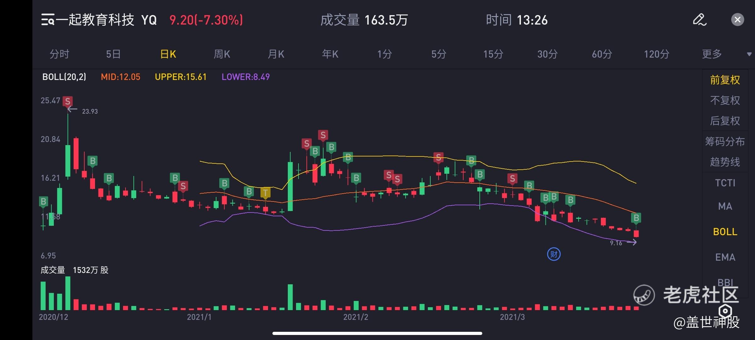最近空了一直在读书,让自己忙碌起来,假如一直盯着它看反而会影响情绪. 目前我能知道的利空就是教育部的政策,中国所有行业都面临这样的风险.悦刻今晚的情况想必大家都看到了,其它行业都一样.所以,我告诫自己,以后永远不要碰二年内上市的新股,其次尽量选美国公司.从公司本身来说没有逻辑上变化,今年和明年增速目前可以大致看得见.在长久就很难说了.