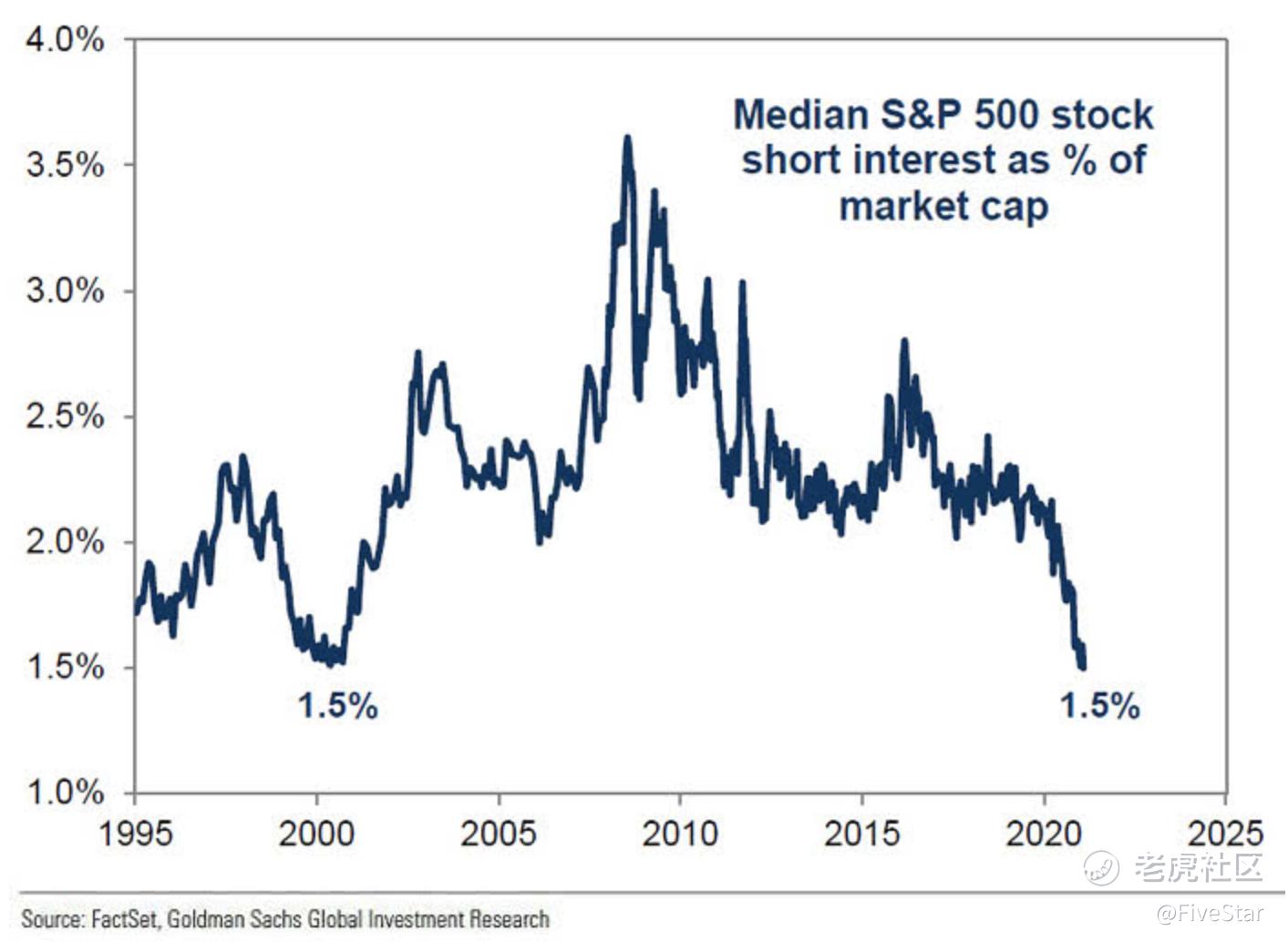 S&P500的做空数据来到20年新低, 上次同样的低点是2000年的互联网泡沫, 莫非又是个拐点?[惊讶]