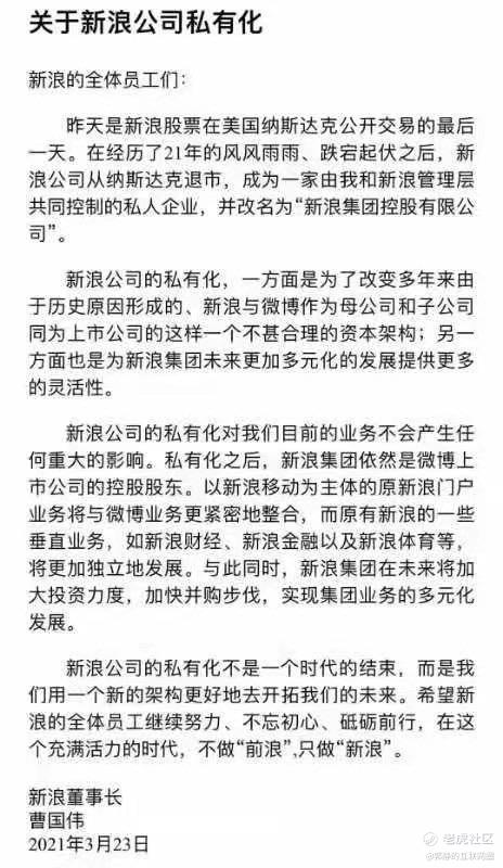 一个时代的结束,作为曾经四大门户之一的新浪正式从纳斯达克退市。现在的年轻人对新浪可能比较陌生,但老网民们对于“新浪”这两个字的情感绝不会低,特别是2000年左右就开始上网的那批人。