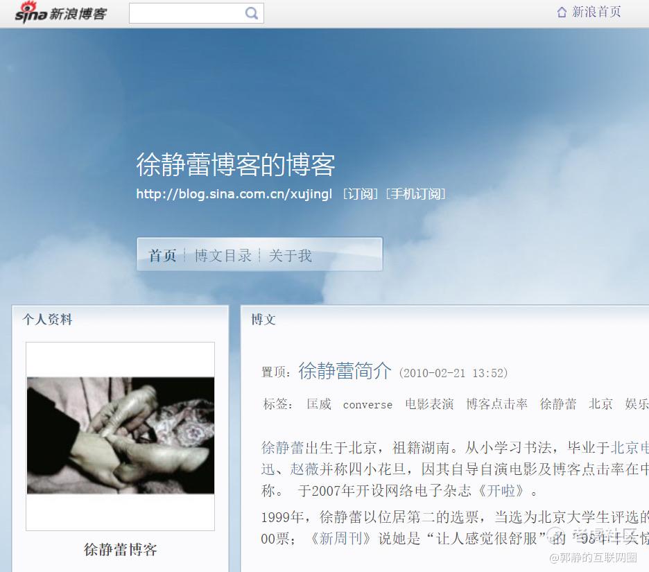 2005年起,以新浪博客为首的博客风在互联网兴起,包括徐静蕾、韩寒等多位名人都靠博客走红。到2007年3月,新浪网博客频道的流量甚至超过了新闻频道位居第一,徐静蕾、韩寒的博客流量也相继过亿。考虑到当时的网民规模,新浪博客的影响力毋庸置疑。