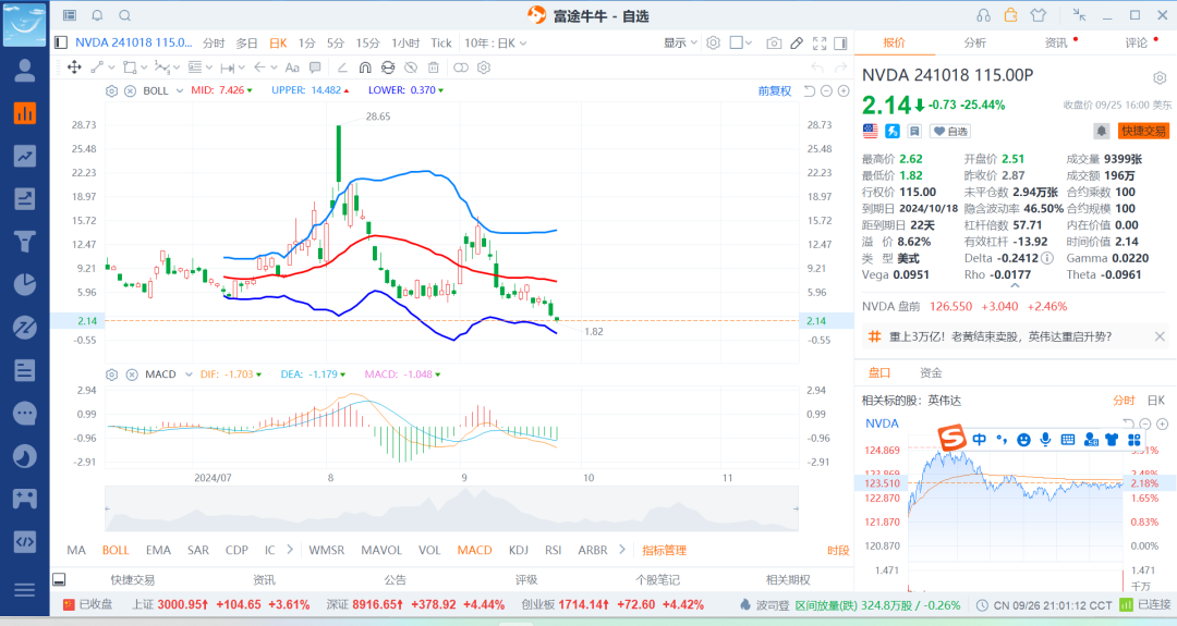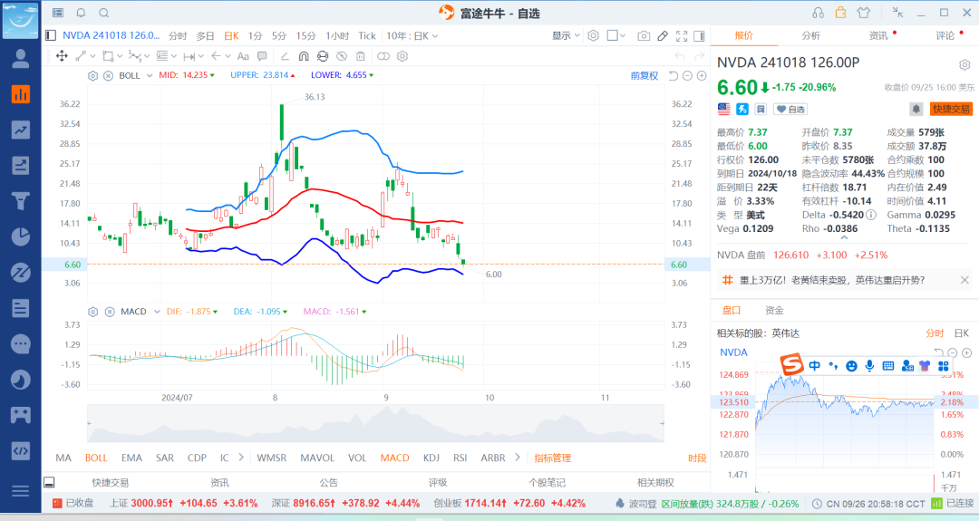 等会开盘10月中线put大概就是4-5快了,那么125跌倒105附近就是差价20,那么盈亏比在5左右也算不错了。