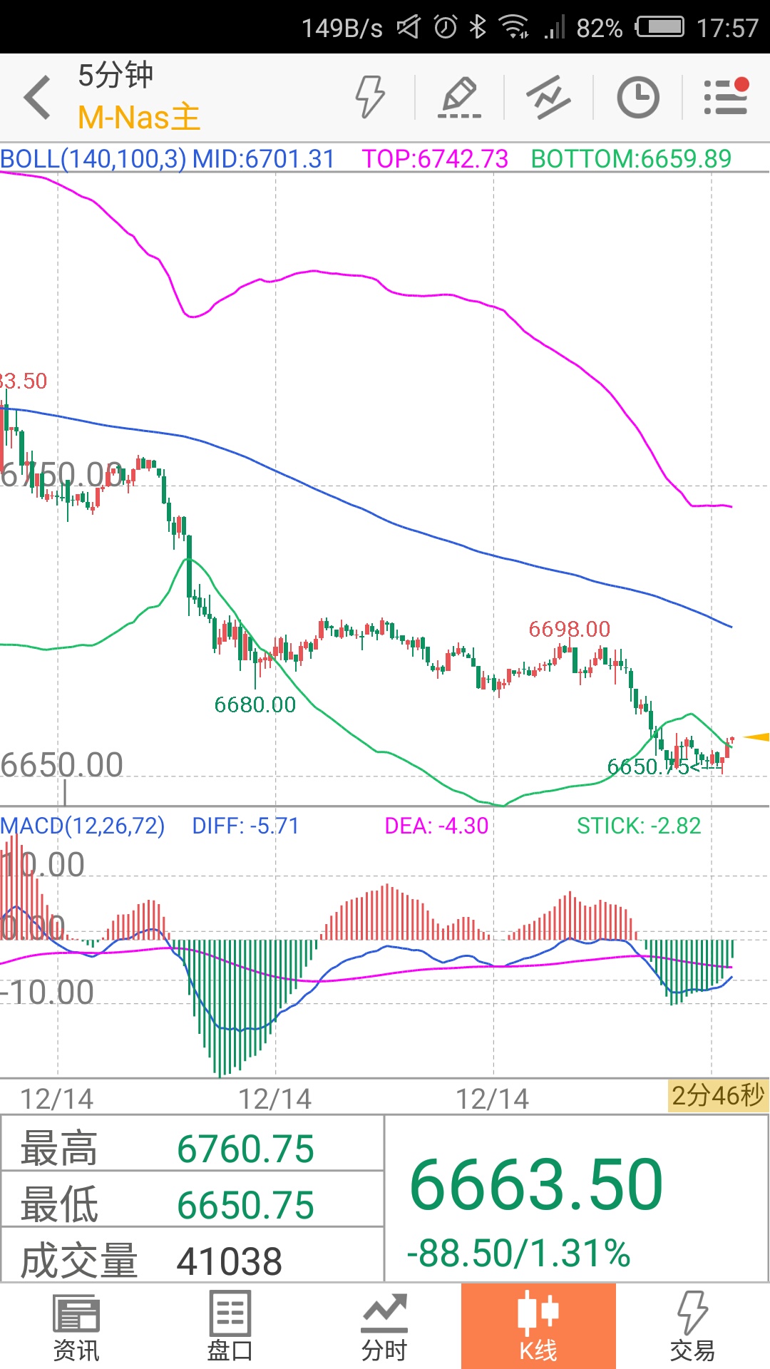 现在5分钟级别有反弹要求,目标6700,极限6750。之后再回调