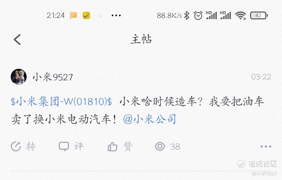 {"i18n":{"language":"zh_CN"},"detailType":1,"isChannel":false,"data":{"magic":2,"id":355777625,"tweetId":"355777625","gmtCreate":1617110780167,"gmtModify":1617110780167,"author":{"id":3494284433559829,"idStr":"3494284433559829","authorId":3494284433559829,"authorIdStr":"3494284433559829","name":"江哥9527","avatar":"https://static.tigerbbs.com/063b6dee1e3cd1bb1e3db7dfb05b6931","vip":1,"userType":1,"introduction":"","boolIsFan":false,"boolIsHead":false,"crmLevel":2,"crmLevelSwitch":0,"individualDisplayBadges":[],"fanSize":6,"starInvestorFlag":false},"themes":[],"images":[{"img":"https://static.tigerbbs.com/70abab4a080ad126549c911e1d80871d","width":"1080","height":"688"}],"coverImages":[{"img":"https://static.tigerbbs.com/70abab4a080ad126549c911e1d80871d","width":"1080","height":"688"}],"extraTitle":"","html":"<html><head></head><body><p><a href=\"https://laohu8.com/S/01810\">$小米集团-W(01810)$</a>支持小米!</p><p><img src=\"https://static.tigerbbs.com/70abab4a080ad126549c911e1d80871d\" tg-width=\"1080\" tg-height=\"688\"></p></body></html>","htmlText":"<html><head></head><body><p><a href=\"https://laohu8.com/S/01810\">$小米集团-W(01810)$</a>支持小米!</p><p><img src=\"https://static.tigerbbs.com/70abab4a080ad126549c911e1d80871d\" tg-width=\"1080\" tg-height=\"688\"></p></body></html>","text":"$小米集团-W(01810)$支持小米!","highlighted":1,"essential":1,"paper":1,"likeSize":2,"commentSize":0,"repostSize":0,"favoriteSize":0,"link":"https://laohu8.com/post/355777625","repostId":0,"isVote":1,"tweetType":1,"viewCount":2576,"commentLimit":10,"likeStatus":false,"favoriteStatus":false,"reportStatus":false,"symbols":["01810"],"verified":2,"subType":0,"readableState":1,"langContent":"CN","currentLanguage":"CN","warmUpFlag":false,"orderFlag":false,"shareable":true,"causeOfNotShareable":"","featuresForAnalytics":[],"commentAndTweetFlag":false,"andRepostAutoSelectedFlag":false,"upFlag":false,"length":28,"xxTargetLangEnum":"ZH_CN"},"commentList":[],"isCommentEnd":true,"isTiger":false,"isWeiXinMini":false,"url":"/m/post/355777625"}