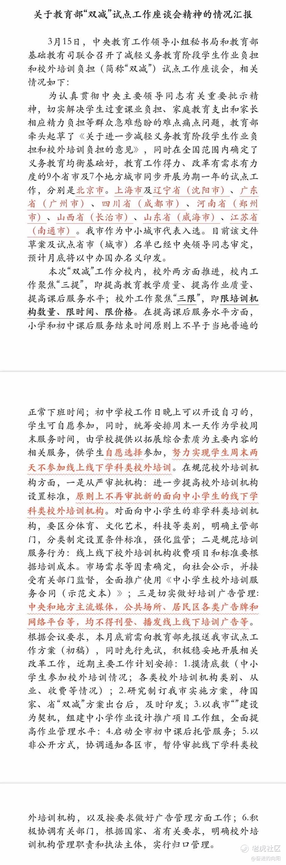我也看到这份报告的照片,感觉校外培训凉凉了