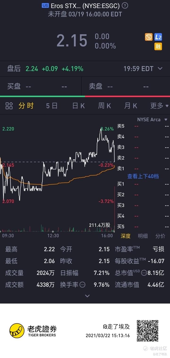 股票代码是 $Eros STX Global Corporation(ESGC)$ 。这家公司原本是STX Entertainment, 它是一家小型的美国娱乐和媒体公司,主要从事电影、电视和数字媒体(包括现场活动和虚拟现实)的制作、发行、融资和市场营销。该公司由电影制片人罗伯特·西蒙兹(Robert Simonds) 和比尔·麦格拉山(Bill McGlashan)于2014年创立。该公司的投资者包括弘毅投资(Hony Capital)、腾讯(Tencent)、电讯盈科(PCCW)、TPG Growth、Liberty Global等等。