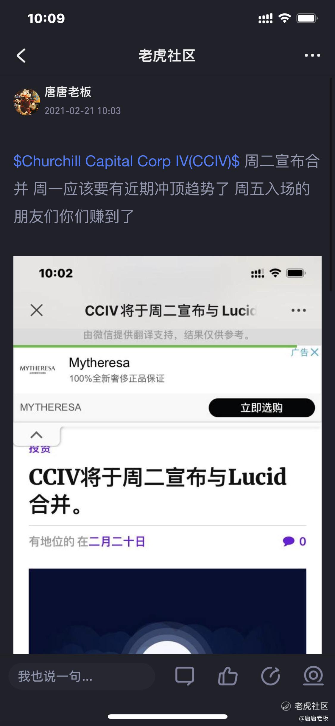 $Churchill Capital Corp IV(CCIV)$看看吧 准备冲顶前出手 建议别等正式合并 lucid21年普通款才出货 这一大段时间利好不会太多 可以抽出利润寻找下一支更加具有潜力的股票 不要对股票有情怀
