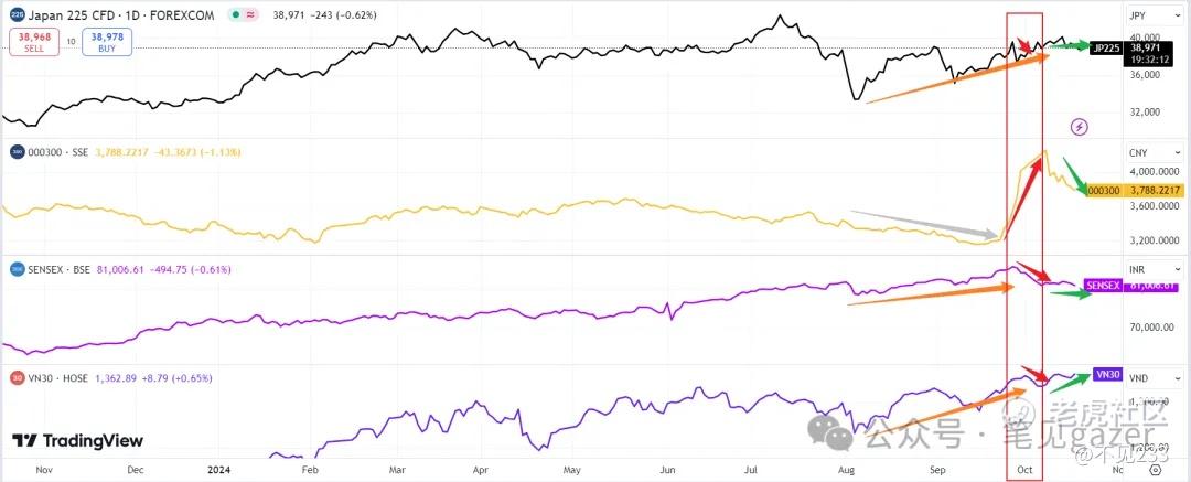 PS如果大家有时常关注海外权益资产的状态,伴随着10月初大A打爆空头的行情,印度、越南、日经等新高股市从高位滚落——笔者一开始也和以为全球热钱“回流”中国市场有关,但从龙结束“牛市”后(上一期笔记),这些东南亚权益市场的表现,出现了不同程度的分化···