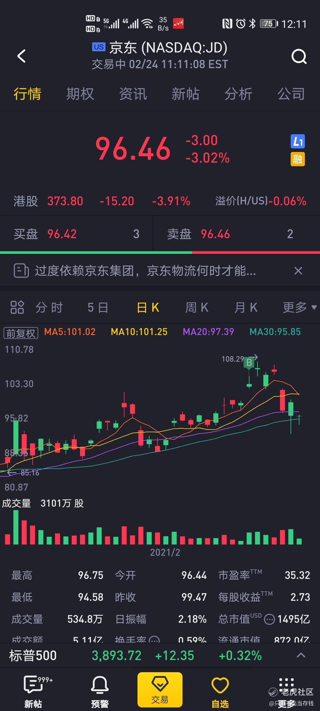 难道不幸言中了,拜登统治下股票跌了。还是那句话话,微涨或是振荡行情,跌的可能性也有。现在要加企业税,缓跌概率也很大的。抓抓振荡行情,高抛低吸。涨点就抛了。