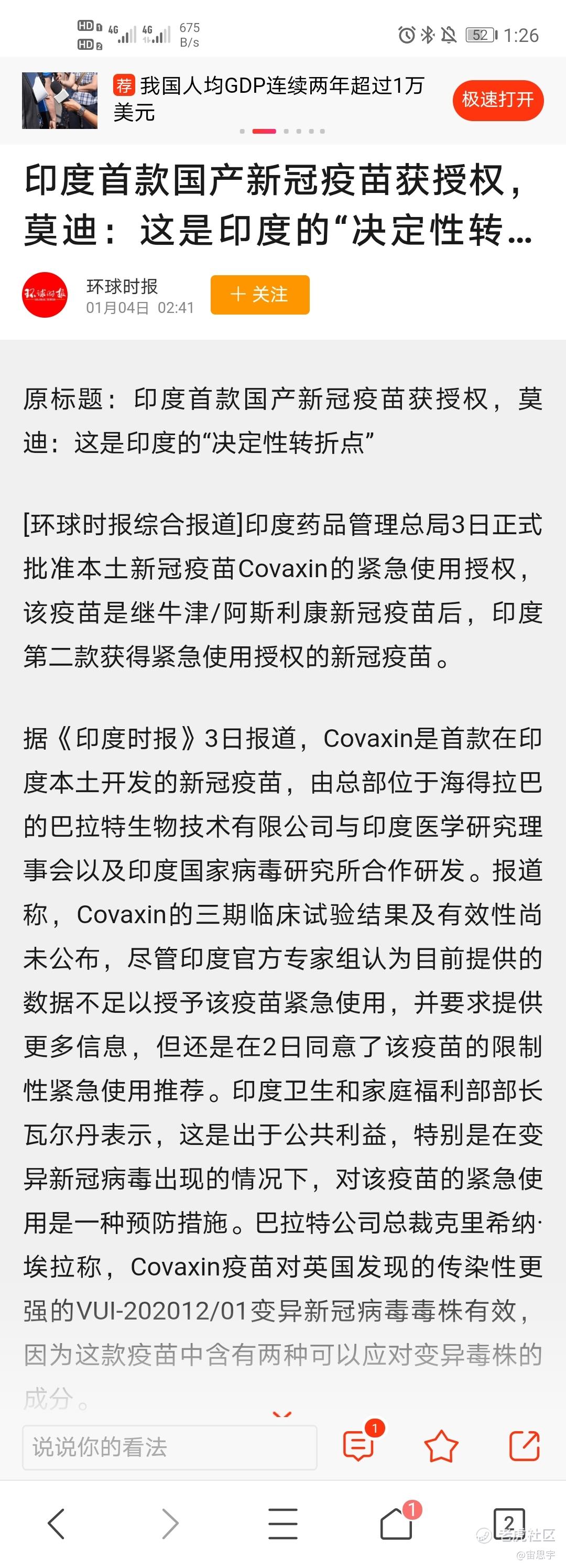 太帅了,总统莫迪注射OCGN的新冠疫苗。