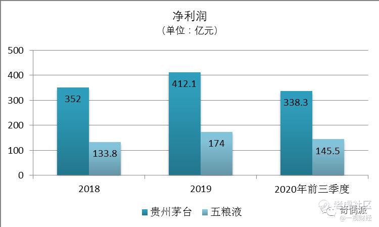 由于稀缺性和龙头公司定价权的差异,五粮液公司的净利润与贵州茅台的净利润相差要远大于营收的差距。五粮液在2018、2019和2020年前三季度的净利润分别是133.8亿元、174亿元和145.5亿元;而同期贵州茅台的净利润则分别是352亿元、412.1亿元和338.3亿元。