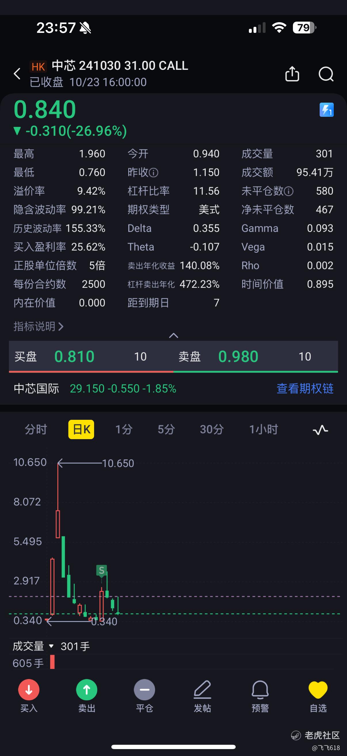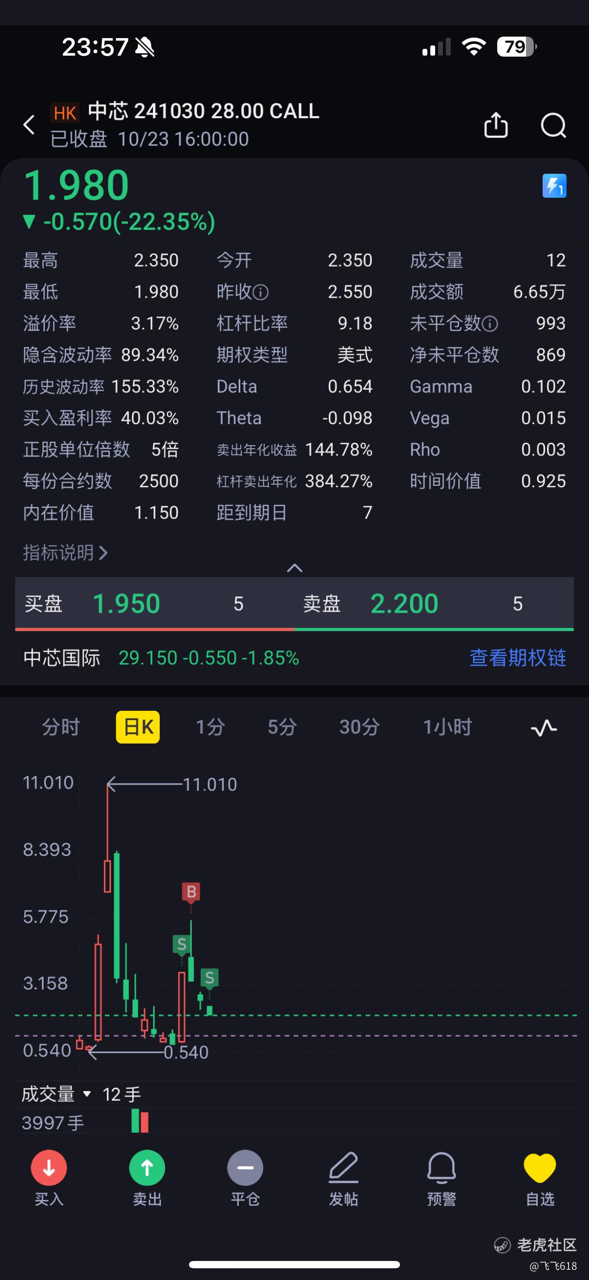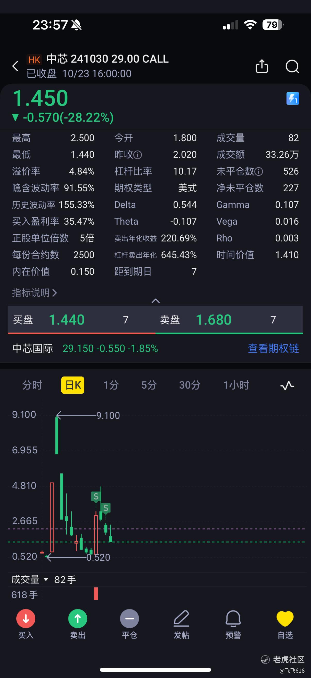 2.值得反思的地方也有几点:第一,还是担心股价继续涨怎么办,没有卖出实值看涨期权,而是卖出了平值和虚值,没有充分吃到权利金。第二,小心被平仓,小心被平仓,小心被平仓,重要的事情说三遍!即使做期权卖方,仓位也不要打的太慢,上周五中芯大涨,还被动平了几手,回头看有点可惜。第三,不要裸空,即使港股个股的权利金比美股香,也不要单纯去赌方向,否则心态绝对炸裂,多空比建议不低于5:1,长期看,做多才是王道。