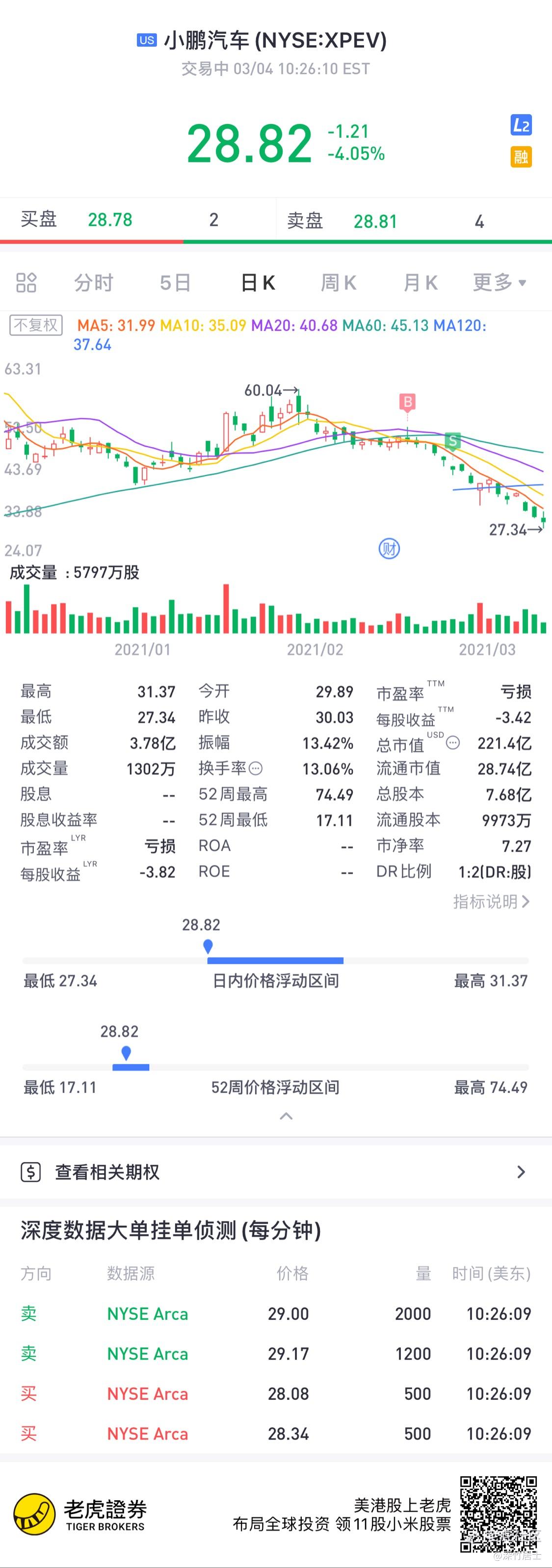 #小鹏汽车 破三十了,科技股跌的太凶残了
