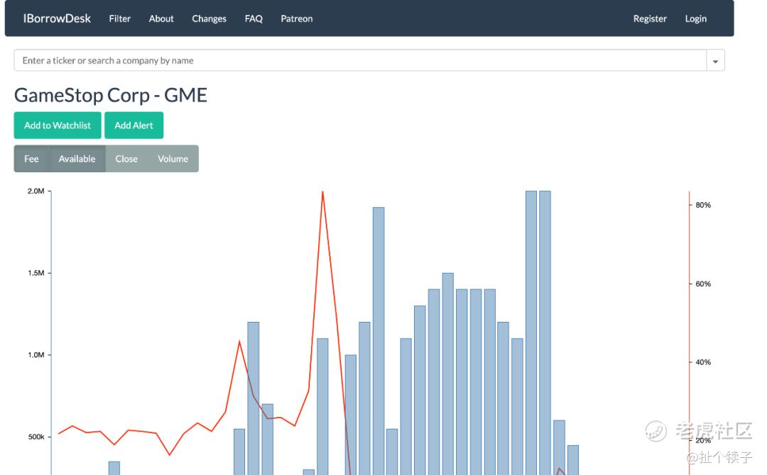 首先是关于作者引用的做空数据。我发现最近很多人在引用一个叫做IBorrowDesk的网站,网站里给出了可借出做空股数量和费率。