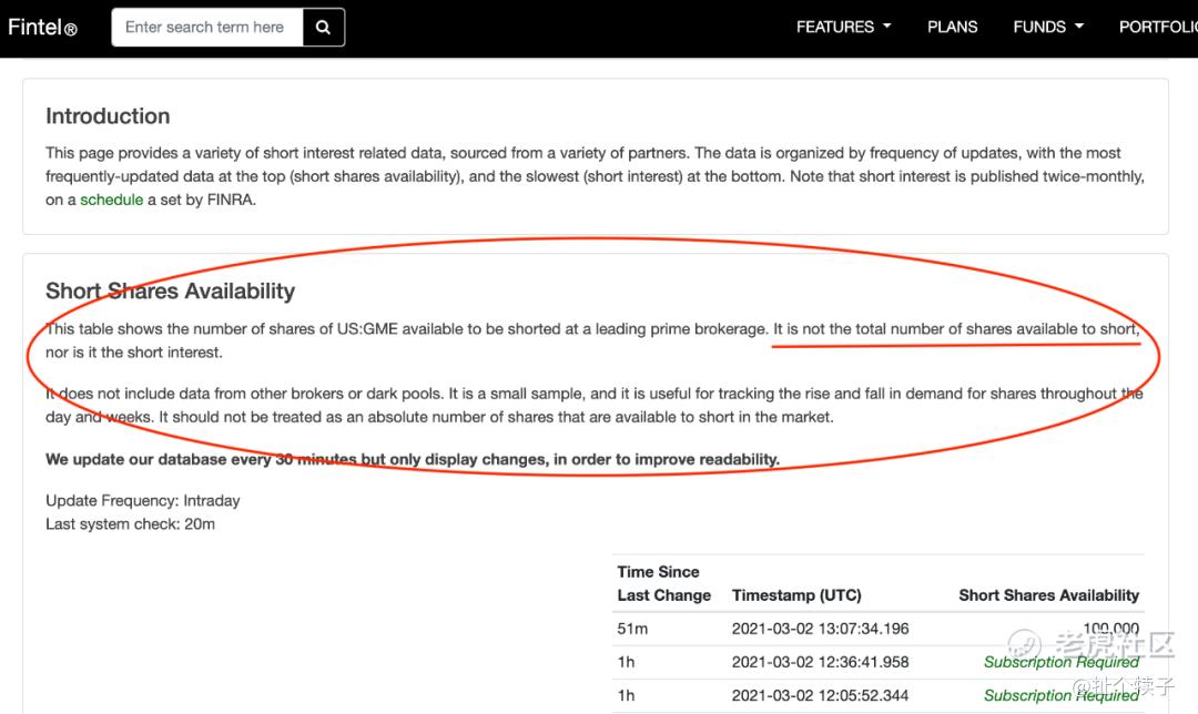 另外一个网站Fintel上的数据应该也是从盈透证券copy下来的,网站已明确表明所显示的可借出股数不代表市场上所有可借出股数,不包括其他券商和dark pools。