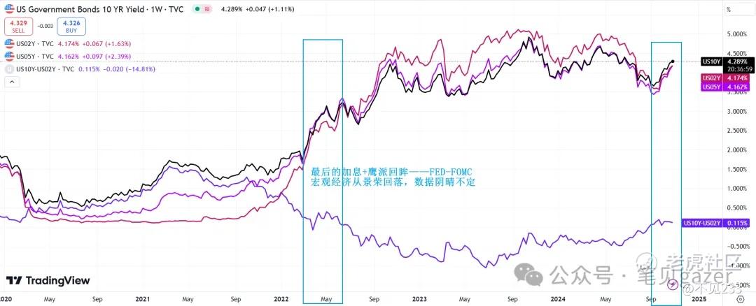 而伴随着美债收益率走高,美债结构的收窄,其实也进入类似于2022年中的数据驱动+政策风向转动的关口···