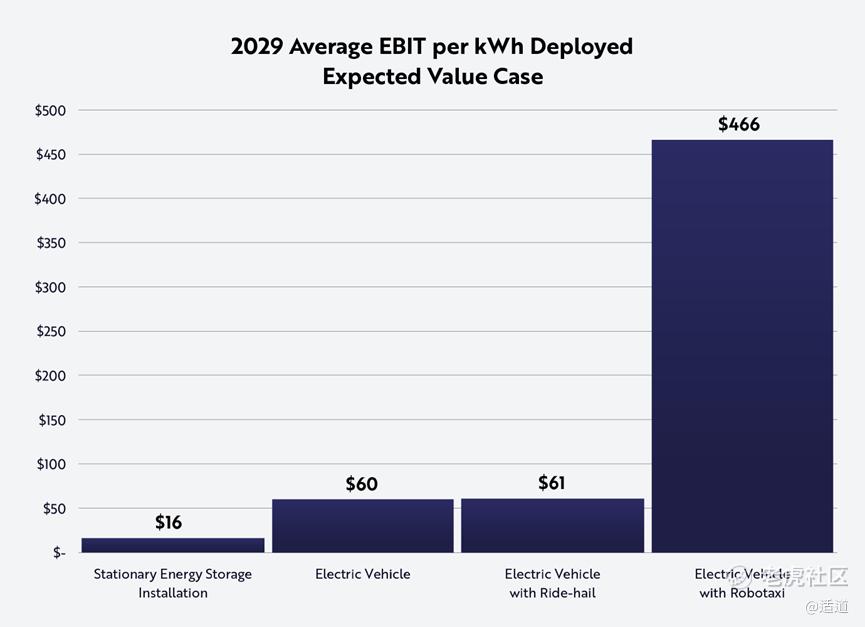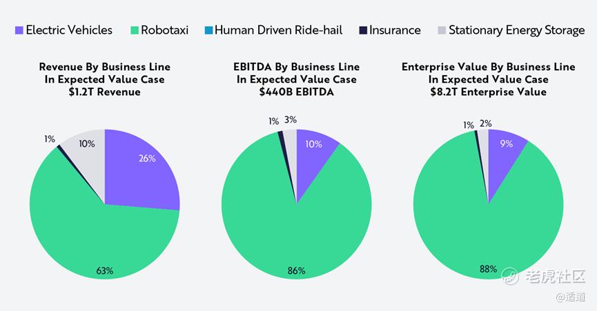 到2029年,特斯拉近90%的企业价值和收益归功于Robotaxi业务,如下图所示。