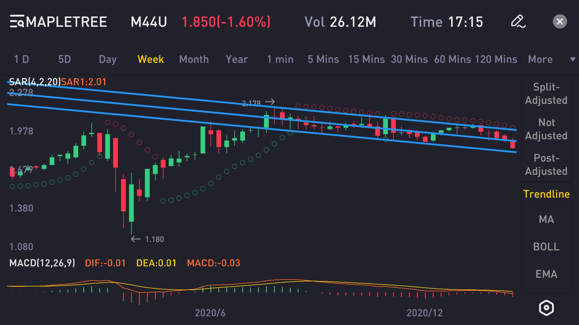 $MAPLETREE LOGISTICS TRUST(M44U.SI)$Definitely a good reit but i will wait for it to break out of this down trending channel to add more.