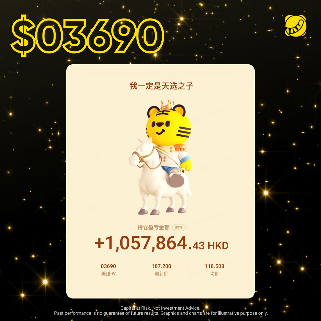 恭喜虎友 @LogicalWing ,通过精准操作美团股票,轻松斩获105万港币的收益!