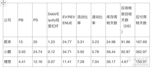 接着由于上面三家的EV/ebitda都是负数无法作为参考,那么就选取了一个近似的数据,企业价值/年营收,相较于企业价值倍数,EV/R更多考察的是公司的销售的能力,所以来比较一下,小鹏明显高估了,理想被低估了。