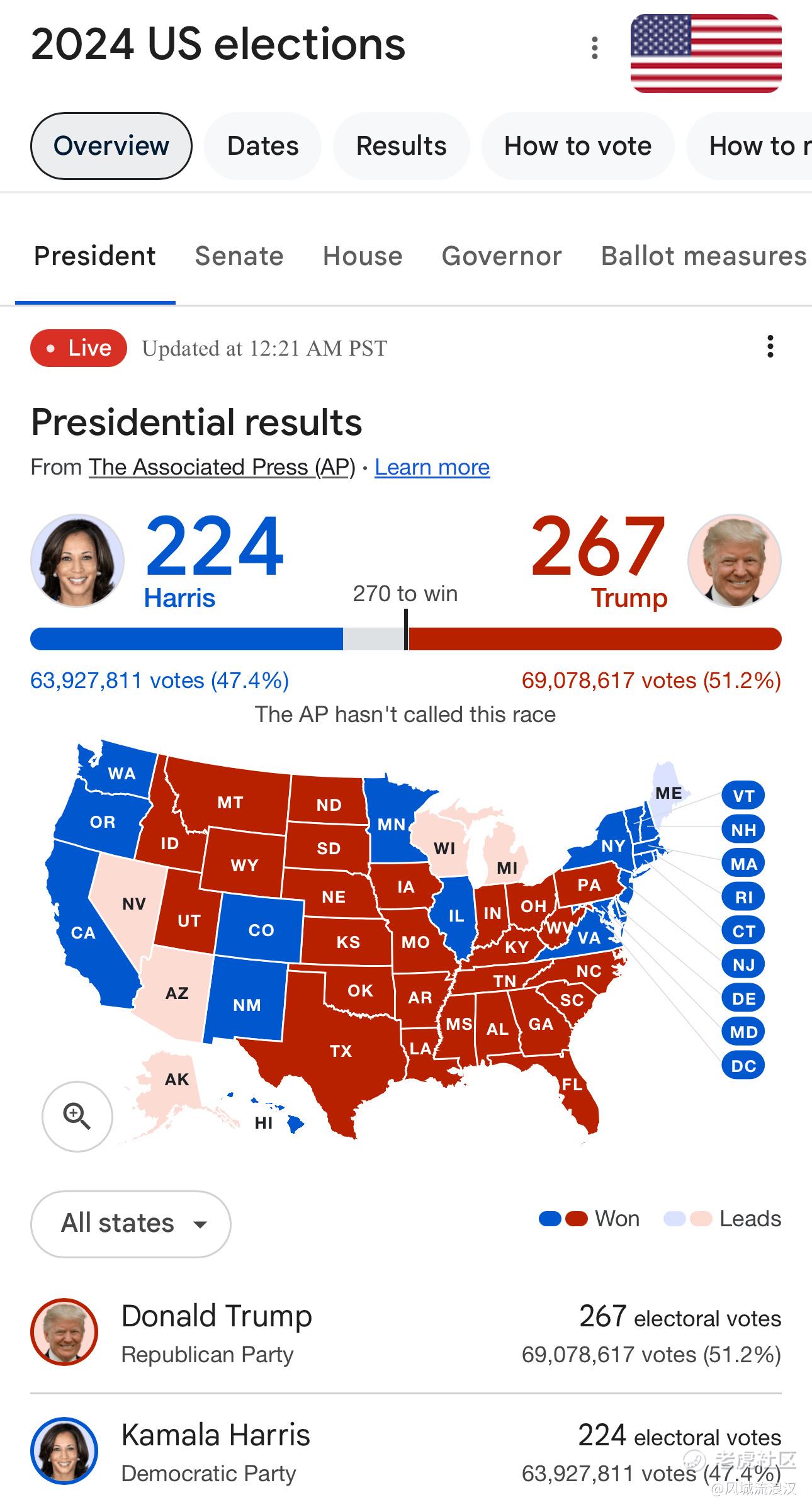 2024大选基本尘埃落定,或许本来也没有那么焦灼,马斯克和扎克伯格两位都是拥有社群数据的人早早选择了川普。副总统人选既连接了中部大农村的人民,又和硅谷资本搭上线,才思敏捷在媒体镜头前谈吐逻辑清晰。而民主党阵营看不出政策方向,宣传的是川普的负面新闻没有施政主轴以及解决人民诉求的方向。只有在选前之夜,突然不攻击川普展示格局,但是也显得突兀。整体来说哈里斯完全不足以胜任总统,能够代表民主党大概是由于拜登留下来的政治献金换人不方便。而另外一边也是深受白人拥戴,结合了华尔街硅谷产业资本的卷土重来的2.0川普,更加理性务实。参考2020民调最准的机构atlas intel所做的预测,川普会赢七个摇摆州,事实也确实如此。逃过子弹威胁的川普或许真的是天选之子。$特斯拉(TSLA)$ $特朗普媒体科技集团(DJT)$ $Meta Platforms, Inc.(META)$ $微软(MSFT)$