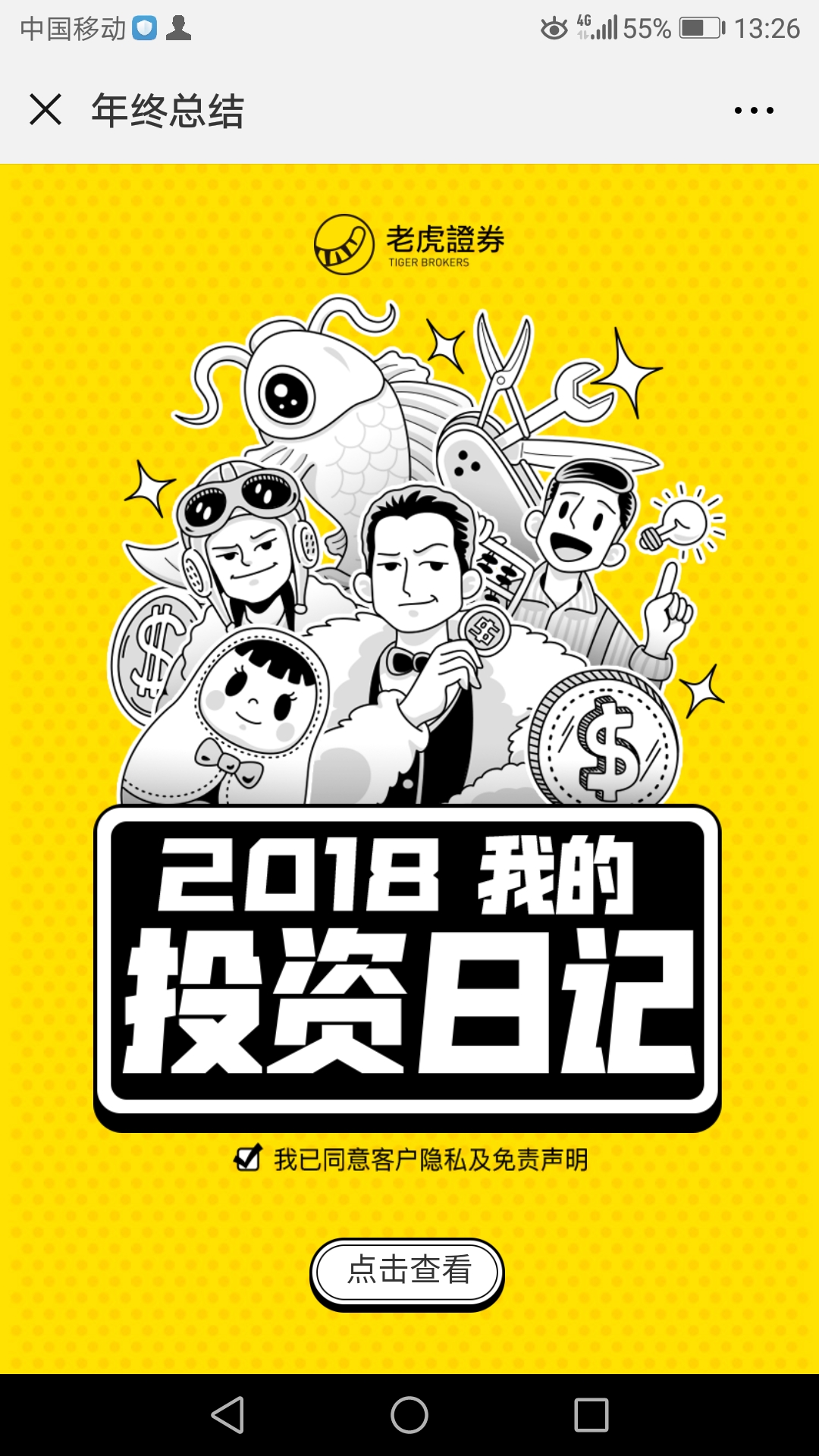 3、我截图了一个二维码,只要微信扫描就可以生成2018年投资日记了。
