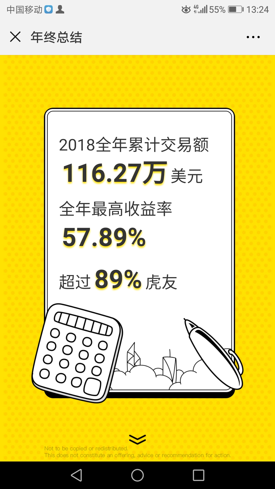 1、首先声明一下,老虎的盈利数据不是非常准(我的部分入金也计算成盈利了),实际收益绝对没有这么高的(请不要估算我账户总资产是多少,因为很是不准)。但这样的数据可以满足我的虚荣心(我有一点点喜欢吹牛逼)。我也不喜欢看枯燥的文字,还是动漫一样的图片比较好看。