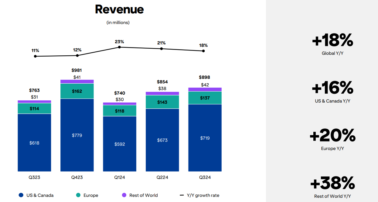 营收8.98亿美元,同比增18%,好于市场预期的同比增17.5%;