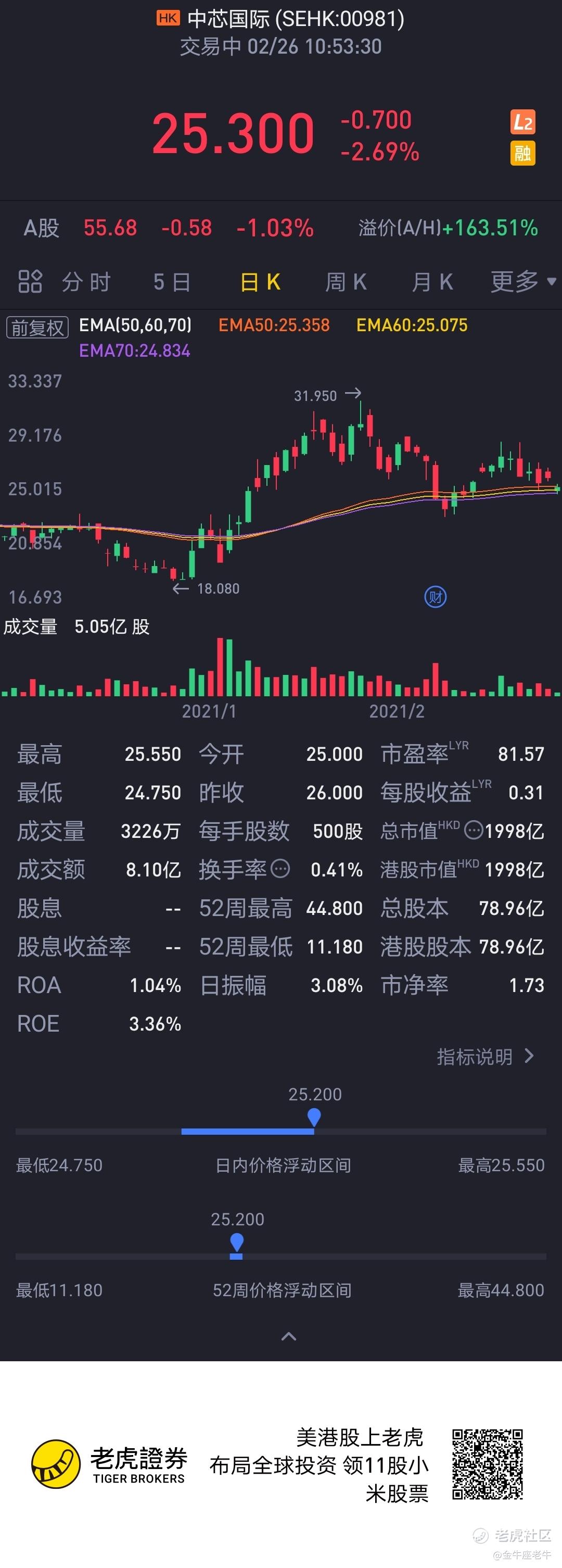长线看好中芯,往下跌是进仓良机