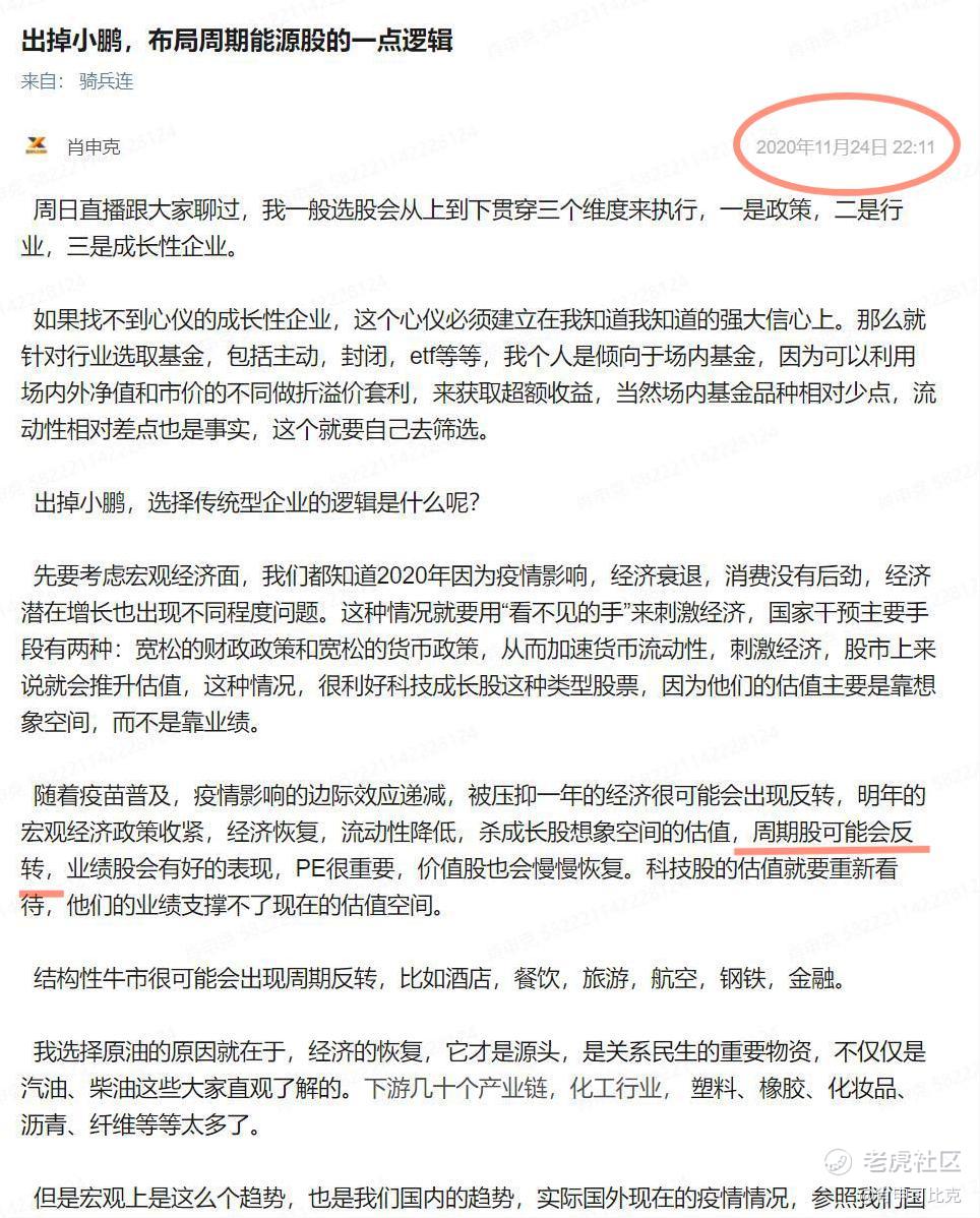 原因就是我去年时候就在骑兵连里从宏观层面分析研究今年的经济形势,比较确信周期经济的到来。下面星球的图是我在去年11月份时候的一些观点,大家可以参考逻辑。