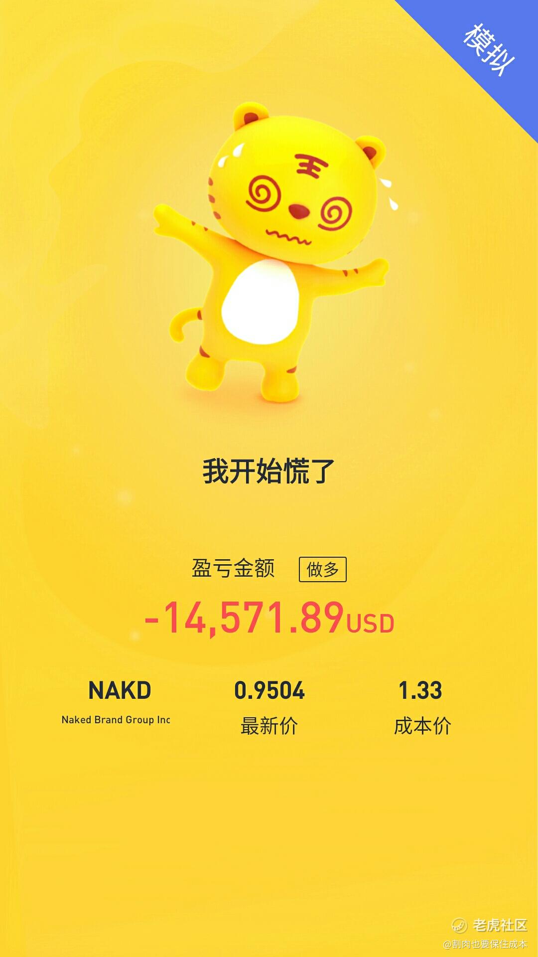 $Naked Brand Group Inc(NAKD)$上次最后一贴说是很快到2块,结果几天就到2.18,挂单太高,没卖成。现在损失惨重,超级惨重,1.7到2块的仓位全部50%以上的亏损[喷血] [喷血] 纳指七连跌,铁打的庄家也撑不住了。。。大盘再不止跌,大部分股票就要恐慌性踩踏了,大家注意安全了,我在山顶,踩踏与我无缘[流泪] [流泪] 。闭上眼睛,跳下去,才是我的归路。[安慰] [安慰]